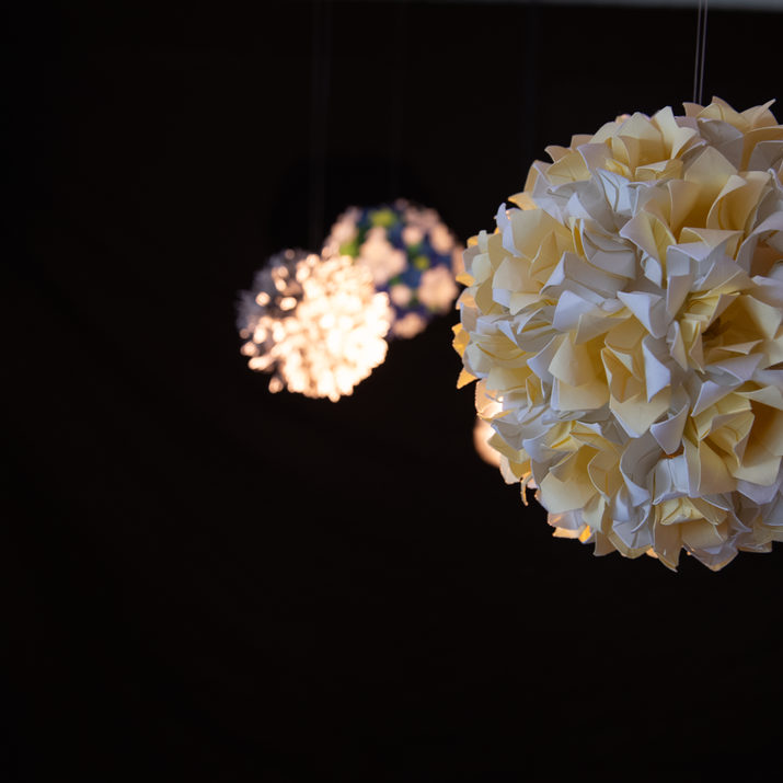 Plane of Planetary works involves delving into astrological traditions and how some provide a link between the cosmoses. Some human relationships like botanists associate plants with planets based on the plant’s features which is presented through these origami sculptures. This immersive installation presents beauty within the organization of our universe whilst pondering our existence within the ever-expanding vastness of the universe. It questions the nature of colour and form through the physical manipulation of material to create three-dimensional forms, delving into Kusudama history to transform the original medicinal flower ball from the ancient into something beautiful. Paper flowers are known for their longevity being able to preserve their beauty, whilst fresh flowers wilt over time, symbolizing eternal love, beauty, and celebration of a new beginning.